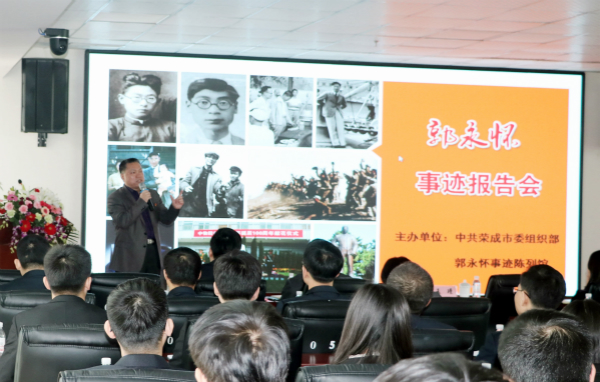 3月8日上午,榮成市委組織部郭永懷先生事跡報告宣講團來我司舉行宣講活動,講述郭永懷先進事跡,激勵科研人員愛國奮斗。新區工信局副局長李云峰、我司董事長張新功及公司各級管理人員、全體黨員等百余人共同聆聽了此次宣講。[ 查看更多 ]