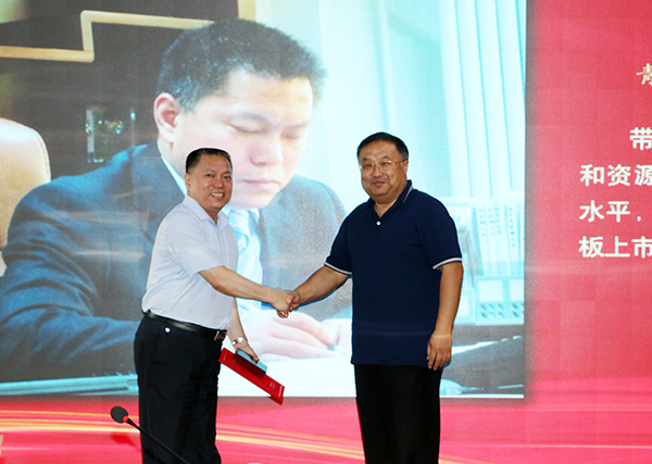 會(huì)上,逯鷹部長(zhǎng)向董事長(zhǎng)張新功頒發(fā)了“新區(qū)成立5周年突出貢獻(xiàn)人物”和“山東省優(yōu)秀共產(chǎn)黨員”的證書(shū)及獎(jiǎng)牌,并對(duì)他帶領(lǐng)企業(yè)突破化工固廢無(wú)害化處理和資源化利用關(guān)鍵技術(shù)的突出貢獻(xiàn)表示肯定。