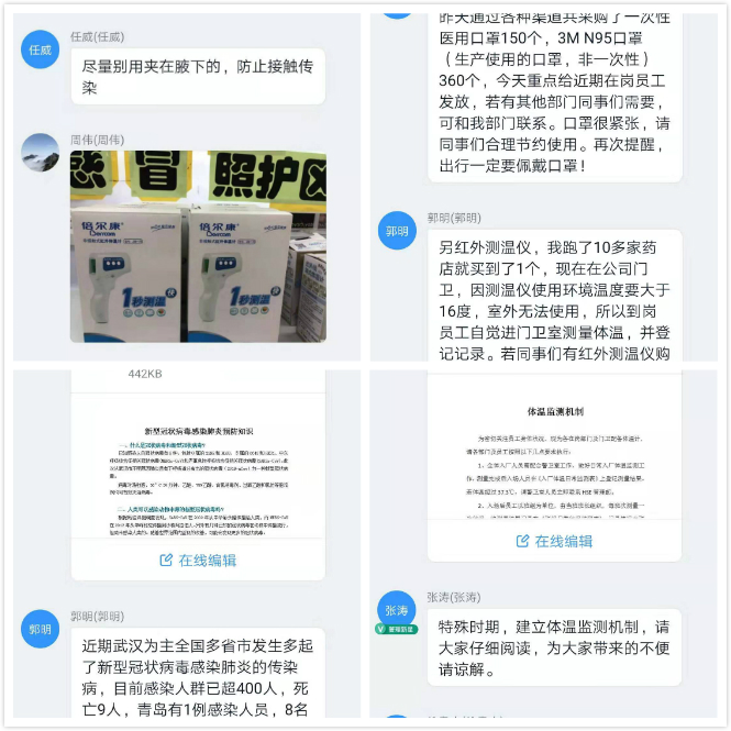 在HSE管理部的牽頭組織下,在各部門的大力配合下,公司迅速制定了企業(yè)疫情防控方案,建立了返青人員管理機制、消毒機制、體溫測量機制、餐食管理機制、每日重要信息匯報機制和異常員工隔離區(qū)等防控措施;加大日常疾控宣傳,通過持續(xù)發(fā)布釘釘群公告、張貼疫情防控標語等形式做好防控宣傳。欣隆物業(yè)嚴格做好每日的現(xiàn)場消毒、門衛(wèi)值守和體溫監(jiān)測等工作,春節(jié)期間,在物流停運、消毒產品供應有限的情況下,物業(yè)人員聯(lián)合各相關部門人員奔波采購防疫物資,眾志成城戰(zhàn)疫情,為廣大員工提供了安全的環(huán)境保障。