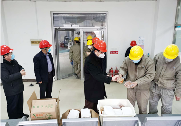 騰騰的餃子出鍋了,黨總支書記李正攜黨總支班子成員向崗位上的職工送去濃濃的溫情,使廣大職工倍受鼓舞。