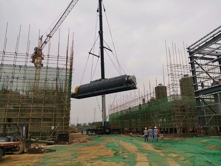 23日上午7點,隨著吊裝指揮的一聲令下,焙燒爐開始起吊。在現場所有建設者的注視下,500噸汽車吊平穩提升,至8點37分,焙燒爐順利吊至裂化劑廠房6米層樓板上。