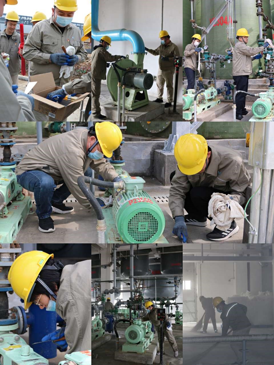 黨總支領導強調完本次活動需要注意的安全事項和打掃標準后,全體黨員兵分三路按照之前的分工,紛紛拿起抹布、鐵鏟、掃帚、毛刷,奔向清掃現場。車間設備旁、罐區中央都能看到黨員同志們的身影,大家發揚不怕臟、不怕苦,不怕累的精神,不放過一個衛生死角。經過兩個半小時的分工協作,廠區衛生得到很大改善。