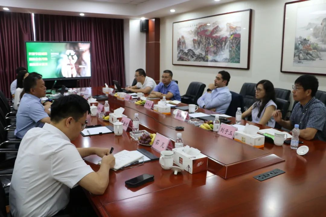 領導一行首先調研了惠城環保廢塑料裂解中試基地,對混合廢塑料深度催化裂解(CPDCC)技術進行了細致的考察和了解,隨后參觀了惠城環保總部研發中心展廳,領略惠城環保的發展歷程、科研力量以及創新技術。參觀結束后三方舉行了技術探討及合作交流會,會上由惠城環保廢塑料項目技術負責人張金慶對廢塑料項目進行了詳細匯報,三方圍繞廢塑料項目的原料來源、技術工藝、產物分布、產品收率等內容進行了深度的交流與研討。