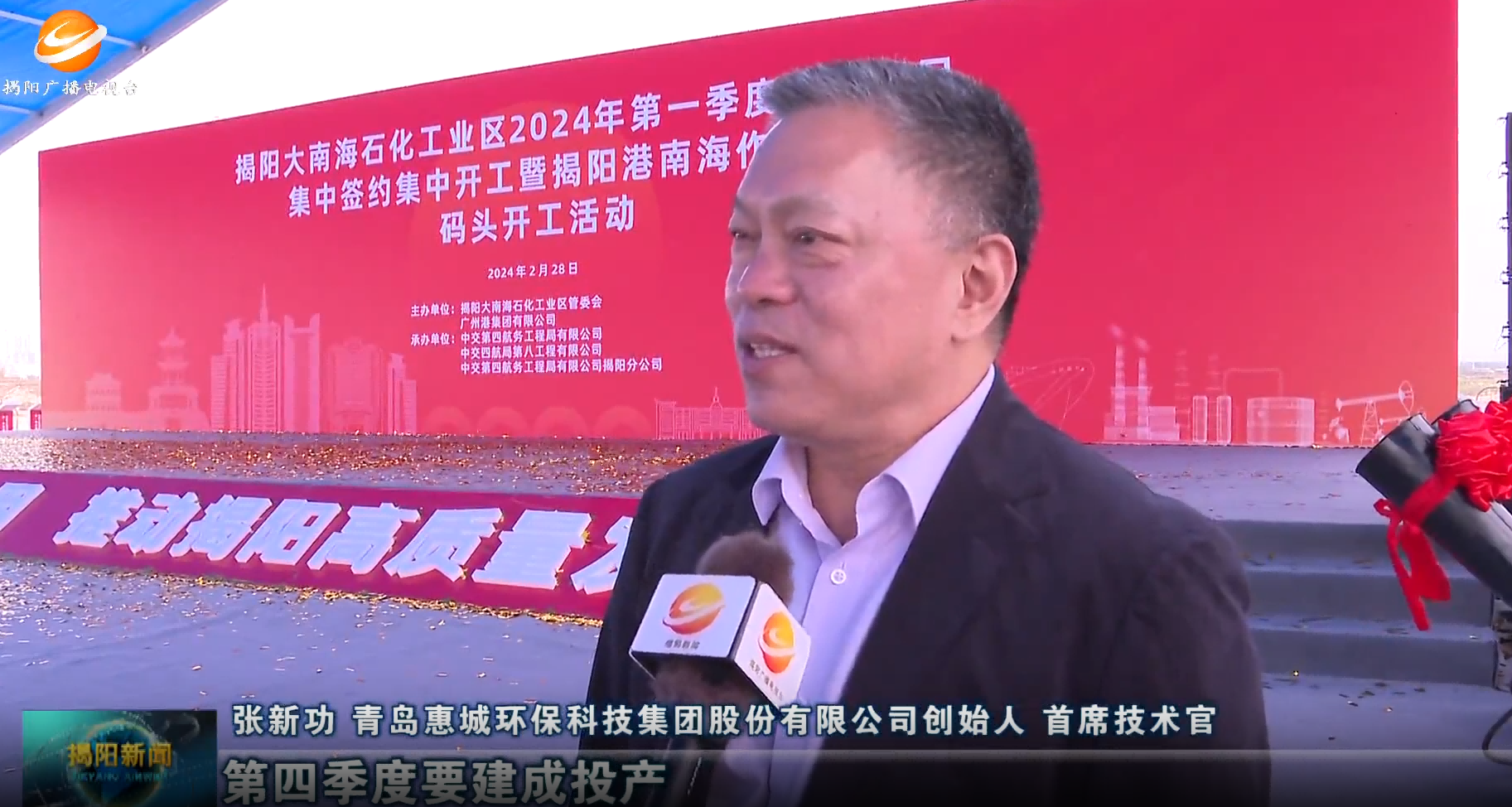 為進一步加快大南海石化產業(yè)的延鏈、補鏈、強鏈,為大南海高質量發(fā)展增添蓬勃新動力,助力揭陽市發(fā)展新質生產力,2月28日,揭陽大南海石化工業(yè)區(qū)舉行2024年第一季度重點項目集中簽約集中開工活動,揭陽市領導王勝、支光南、葛承書、蔡淡群、黃熹、李晉龍等出席開工儀式,青島惠城環(huán)保科技集團股份有限公司創(chuàng)始人、首席技術官張新功受邀參加活動。